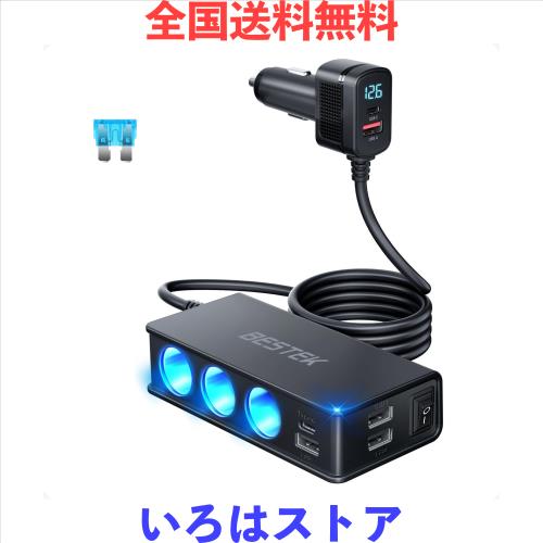BESTEK 車載充電器 シガーソケット 3連 USBポート QC3.0 & PD30W急速充電対応 12V/24Vシステム 電圧・電流表示 A-BTTR49