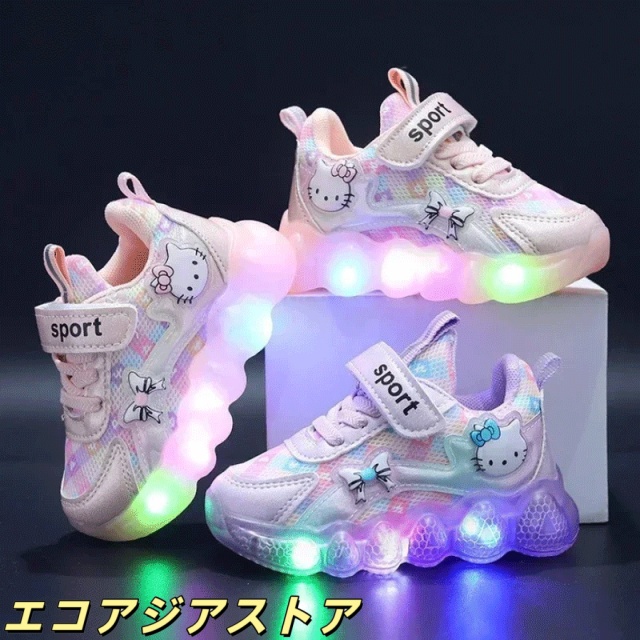 キティちゃん キティ 子供用 靴 短靴 スニーカー シューズ LED 点滅ライト付き 光る靴 送料無料 女の子 キッズ ガールズ