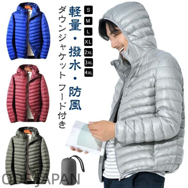 ダウンジャケット メンズ はっ水 フード付き 撥水 防寒着 防寒 ジャンパー アウター ダウン 男性 登山 アウトドア キャンプ 秋 冬 服 服装 メンズ レディース 自転車 バイク 通勤 通学 超軽量 収納袋つき 暖かい