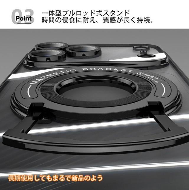 【スタンド機能、両手解放、自由満喫】すべてのMagSafeアクセサリー対応する多機能マジックスタンドは、隠して収納。動画視聴、ビデオ通話、オンライン授業、無限なシーンにスマホを活用出来、スマホに新しいライフスタイルを与えます。