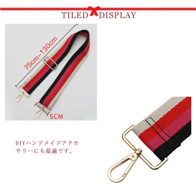 | 手持ちのバッグに付替えるだけでイメージチェンジできるショルダーベルト。 厚みのあるポリエステル混素材を使用しており、柔らかくて丈夫で、手触りが良く、耐久性にも優れています。 幅の広いベルトなので食い込みにくくなり、肩が凝ることも感じない軽量で負担にならなく、使い心地が快適です。 ベルトはお好きな長さに自由に調節でき、斜め掛けや肩掛けなど2wayお使いいただくことができます。 DIYハンドメイドアクセサリーにも最適です。 | |