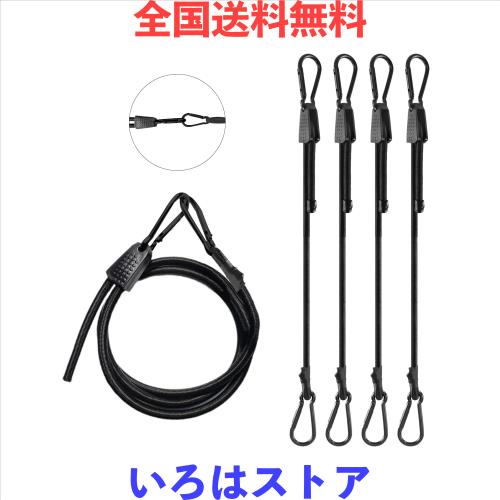 バンジーコード カラビナ 4本セット ゴムバンド フック付き 調節式 カラビナフック 自由伸縮 20cm~100cm ゴムひも 固定ベルト ロープ 荷