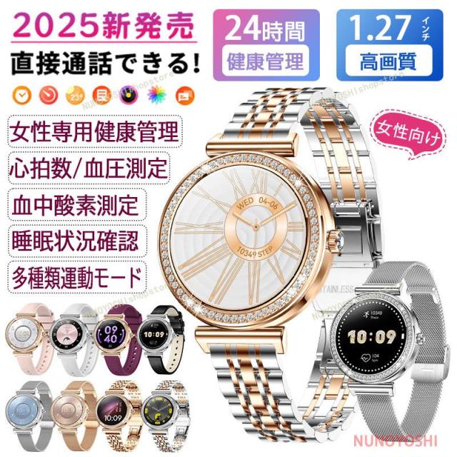 スマートウォッチ 女性 日本センサー 通話機能 血圧測定 心拍数 レディース 血中酸素 睡眠 着信通知 生理管理 体温 歩数計 音楽カメラ制御 敬老の日 プレゼント