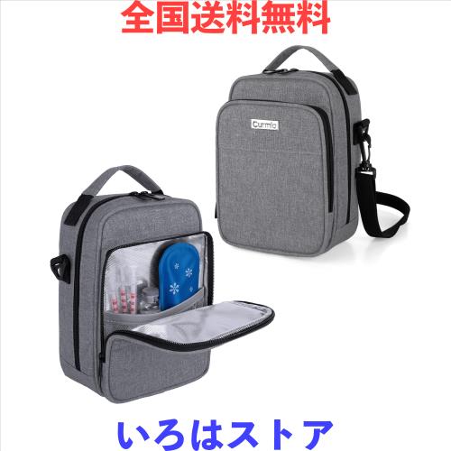 CURMIO インスリンポーチ ショルダーストラップ付き 大容量 血糖値測定用品 インスリン注射用品 まとめて収納 グレー