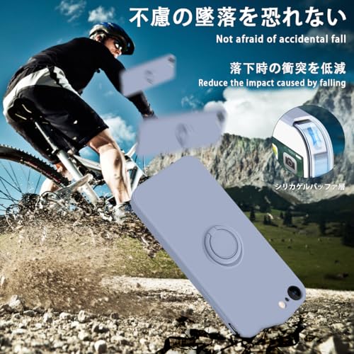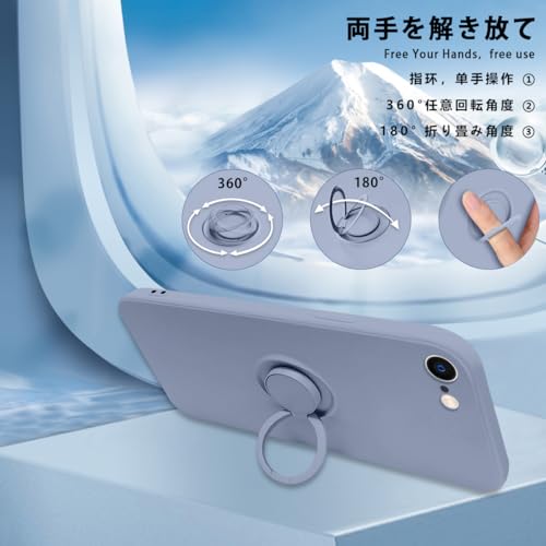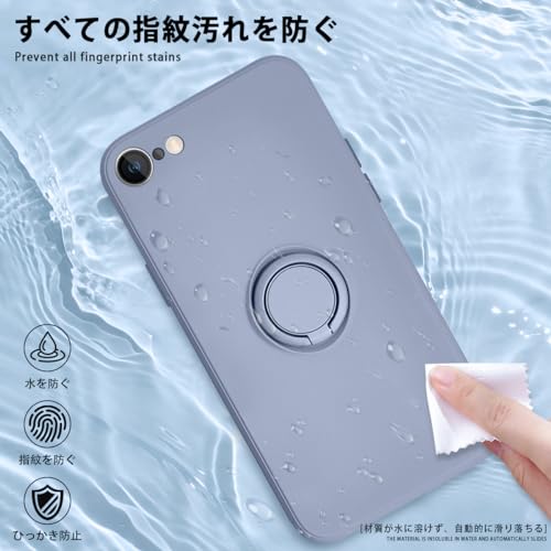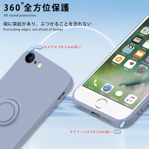 iPhone SE3 iPhone SE2 ケース iPhone8 iPhone7 ケース リング付き シリコン アイフォンSE 第3世代 第2世代 8 7 スマホケース スタンド機能 カバー 耐衝撃 レンズ保護 360°回転 車載ホルダー ストラップホール付き 滑り止め 指紋防止 薄型 (グレー)