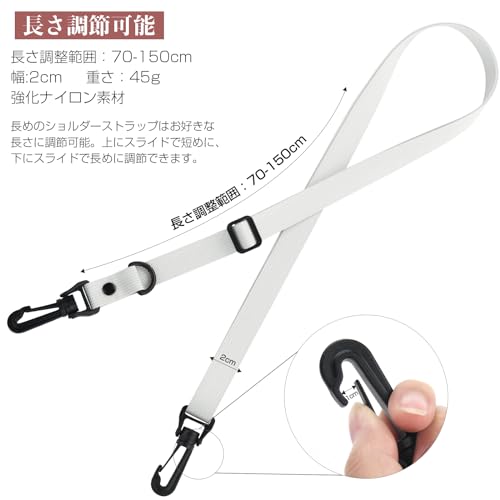 ◎長さ調節可能:長めのショルダーストラップはお好きな長さに調節可能。上にスライドで短めに、下にスライドで長めに調節できます。70cm〜150cmまでの長さに調節可能。