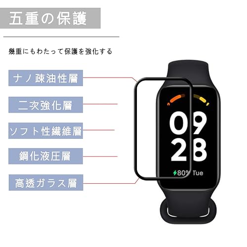 【高透過率】 改良された高透過率の Redmi Smart Band 2 フィルムで、透明度が99%以上と高く、通常の液晶保護フィルムよりも透明度が高くなっています。何も貼っていないような感覚で液晶画面の美しさをお楽しみいただけます。フィルムを貼っていても画面の精細さを損ないません、スクリンの鮮明な色を復元します。
