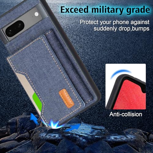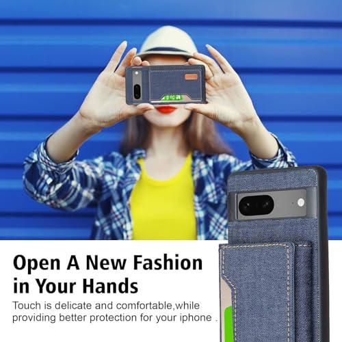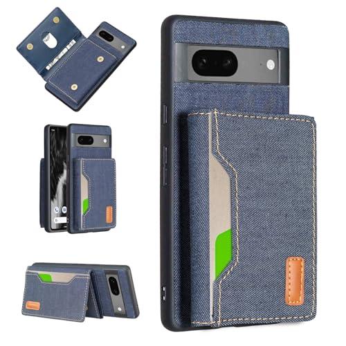 Google Pixel 7 ケース 分離式 スタンド機能 両用 取り外し自由 車載ホルダー対応 デニムケース (ダークブルー) ピクセル7 ソフトバンクpixel7 財布型 カードケース 磁石吸着 名刺入れ 大容量収納 背面カバー グーグルpixel7 BLUE 送料無料