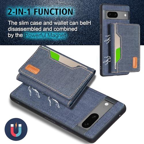 Google Pixel 7 ケース 分離式 スタンド機能 両用 取り外し自由 車載ホルダー対応 デニムケース (ダークブルー) ピクセル7 ソフトバンクpixel7 財布型 カードケース 磁石吸着 名刺入れ 大容量収納 背面カバー グーグルpixel7 BLUE