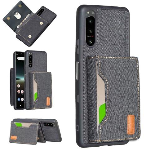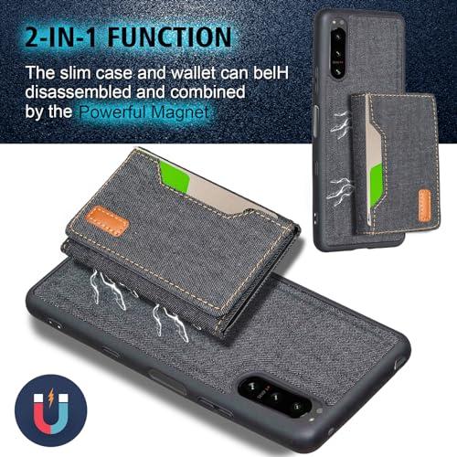 Xperia 5 III / docomo SO-53B / au SOG05 / Softbank A103SO ケース 分離式 スタンド機能 両用 取り外し自由 車載ホルダー対応 デニムケース (ブラック) エクスペリア5iii ドコモso53b ソフトバンクa103so 財布型 カードケース 磁石吸着 名刺入れ 大容量収納...