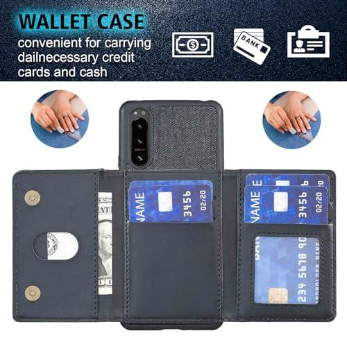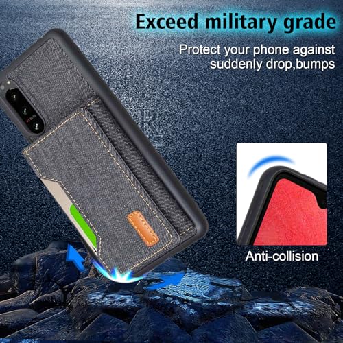 Xperia 5 III / docomo SO-53B / au SOG05 / Softbank A103SO ケース 分離式 スタンド機能 両用 取り外し自由 車載ホルダー対応 デニムケース (ブラック) エクスペリア5iii ドコモso53b ソフトバンクa103so 財布型 カードケース 磁石吸着 名刺入れ 大容量収納 背面カバー ソニーxperia5 3 BLACK