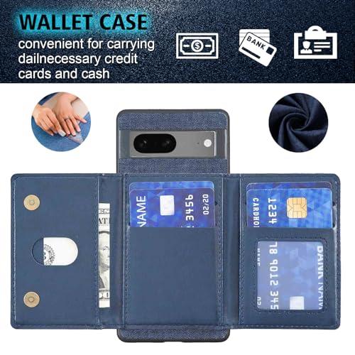 Google Pixel 7 Pro ケース 分離式 スタンド機能 両用 取り外し自由 車載ホルダー対応 デニムケース (ダークブルー) ピクセル7プロ ソフトバンクpixel7Pro 財布型 カードケース 磁石吸着 名刺入れ 大容量収納 背面カバー グーグルpixel7Pro BLUE