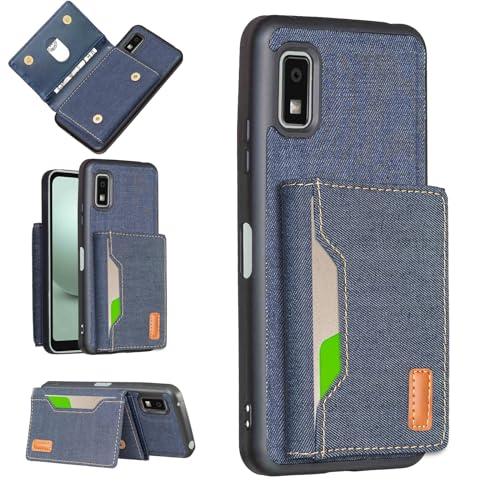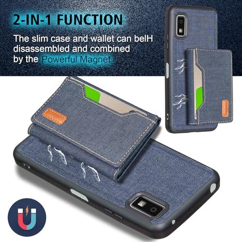 AQUOS wish3 / SH-53D / A302SH / A303SH ケース 分離式 スタンド機能 両用 取り外し自由 車載ホルダー対応 デニムケース (ダークブルー) アクオス ウィッシュ スリー ドコモsh53d ワイモバイルa302sh ソフトバンクa303sh 財布型 カードケース 磁石吸着 名刺 ...