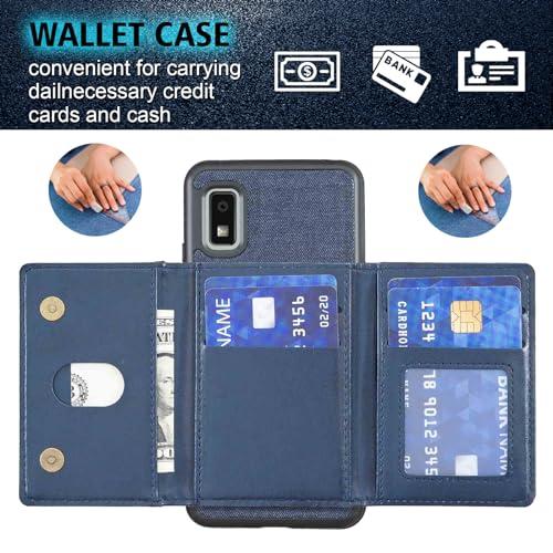 AQUOS wish3 / SH-53D / A302SH / A303SH ケース 分離式 スタンド機能 両用 取り外し自由 車載ホルダー対応 デニムケース (ダークブルー) アクオス ウィッシュ スリー ドコモsh53d ワイモバイルa302sh ソフトバンクa303sh 財布型 カードケース 磁石吸着 名刺入れ 大容量収納 背面カバー シャープwish3 BLUE