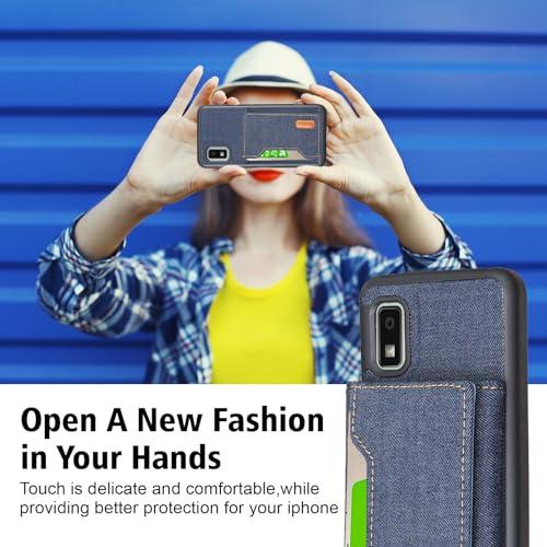 【デニム生地】包+TPU外 :高品質デニム材料を採用しており, 内側はスマートフォンにフィットし、隙間なくそれを保護するソフトTPUシリコーン材料で作られています。