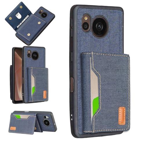 AQUOS sense7 plus A208SH ケース 分離式 スタンド機能 両用 取り外し自由 車載ホルダー対応 デニムケース (ダークブルー) アクオス センス7プラス ソフトバンクa208sh 財布型 カードケース 磁石吸着 名刺入れ 大容量収納 背面カバー シャープsense7plus BLUE