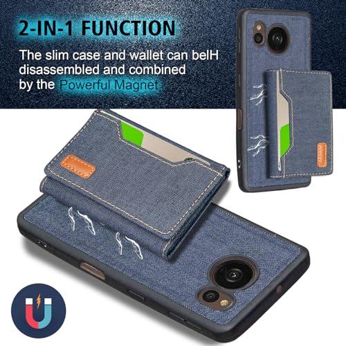 AQUOS sense7 plus A208SH ケース 分離式 スタンド機能 両用 取り外し自由 車載ホルダー対応 デニムケース (ダークブルー) アクオス センス7プラス ソフトバンクa208sh 財布型 カードケース 磁石吸着 名刺入れ 大容量収納 背面カバー シャープsense7plus BLUE...