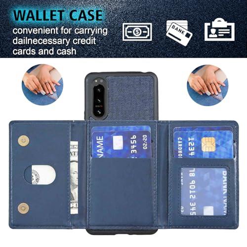 Xperia 5 IV / SOG09 / SO-54C / A204SO XQ-CQ44 ケース 分離式 スタンド機能 両用 取り外し自由 車載ホルダー対応 デニムケース (ダークブルー) エクスペリア5iv ドコモso54c ソフトバンクa204so 財布型 カードケース 磁石吸着 名刺入れ 大容量収納 背面カバ...