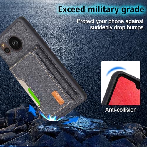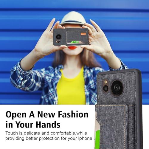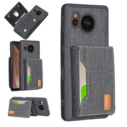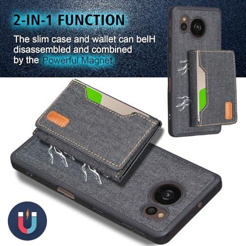 AQUOS sense7 plus A208SH ケース 分離式 スタンド機能 両用 取り外し自由 車載ホルダー対応 デニムケース (ブラック) アクオス センス7プラス ソフトバンクa208sh 財布型 カードケース 磁石吸着 名刺入れ 大容量収納 背面カバー シャープsense7plus BLACK ...