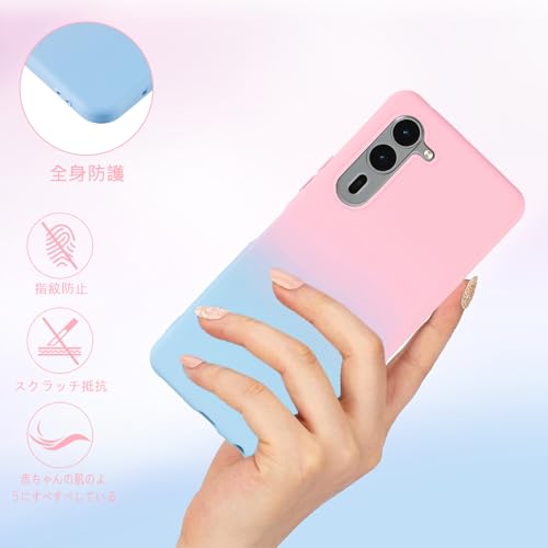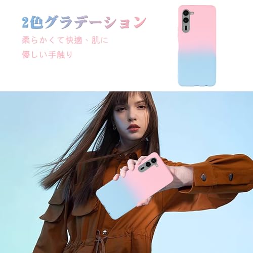 Arrows We2 Plus / F-51E ケース 薄型 柔軟 軽量 アローズ ウィー ドコモf51e グラデーション スマホ保護カバー マット質感 全面保護 耐衝撃 TPU ケース 滑り止め 落下防止 f51e カバー (ピーチ / サファイア) 送料無料