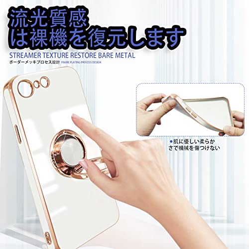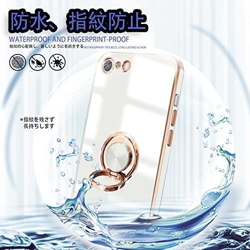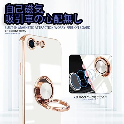 iPhoneSE2 iPhoneSE3 iPhone7 iPhone8 ケース リング付き 耐衝撃 リング スマホケース アイフォンSE3 カバー スタンド機能 360°回転 車載ホルダー対応 ストラップホール付き 落下防止 擦り傷防止 軽量 一体型(ホワイト)