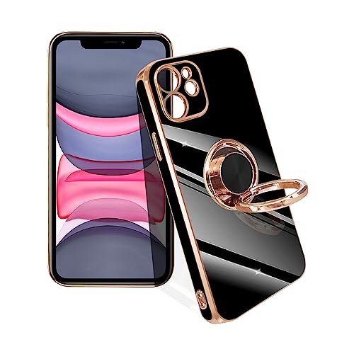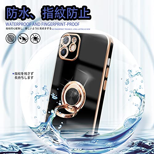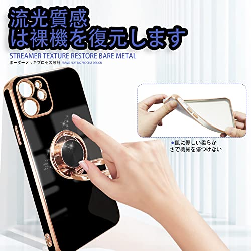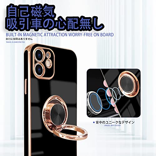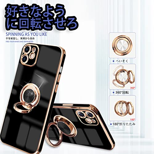 iPhone 11 ケース リング付き 耐衝撃 リング スマホケース アイフォン11 カバー スタンド機能 360°回転 車載ホルダー対応 ストラップホール付き 落下防止 擦り傷防止 軽量 一体型(ブラック)