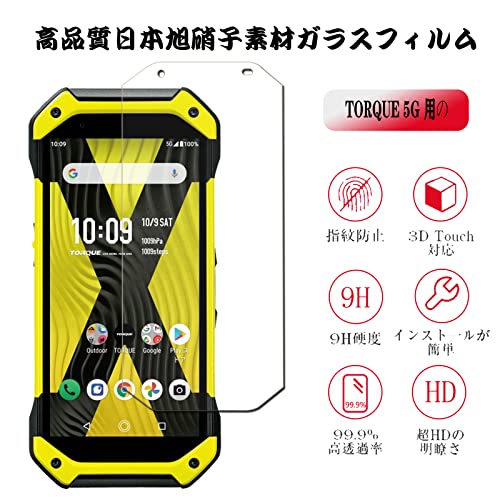 TORQUE G05 フィルム Kyocera TORQUE 5G au KYG01 ガラスフィルム 強化ガラス 液晶 保護フィルム ワンタッチ貼付け 気泡ゼロ ケースと干渉せず 硬度9H 飛散防止 指紋防止 [2枚セット]