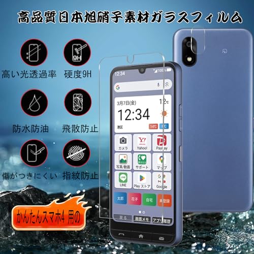 かんたんスマホ4 ガラスフィルム (2枚) +カメラフィルム (2枚) ZTE かんたんスマホ4 A402ZT 保護フィルム 強化ガラス 液晶 保護フィルム ワンタッチ貼付け 気泡ゼロ ケースと干渉せず 硬度9H 飛散防止 指紋防止