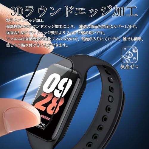Xiaomi Smart band 8 Active フィルム シャオミ スマートバンド8 Active 保護フィルム 画面保護シート 液晶シール カバー 液晶保護 ソフト 3D曲面カバー 耐衝撃 超薄 気泡ゼロ 高感度 指紋防止 超耐久 [3枚セット]