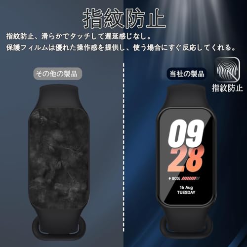 【高透過率】 改良された高透過率の Xiaomi Smart band8 Active フィルムで、透明度が99%以上と高く、通常の液晶保護フィルムよりも透明度が高くなっています。何も貼っていないような感覚で液晶画面の美しさをお楽しみいただけます。フィルムを貼っていても画面の精細さを損ないません、スクリンの鮮明な色を復元します。