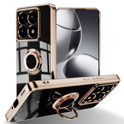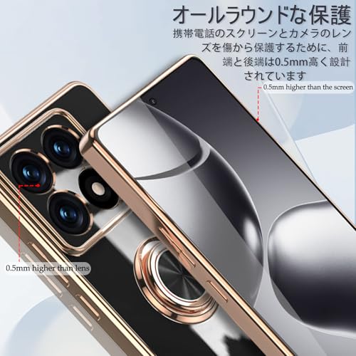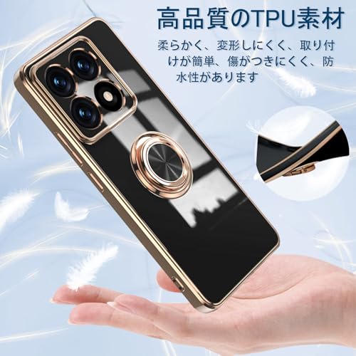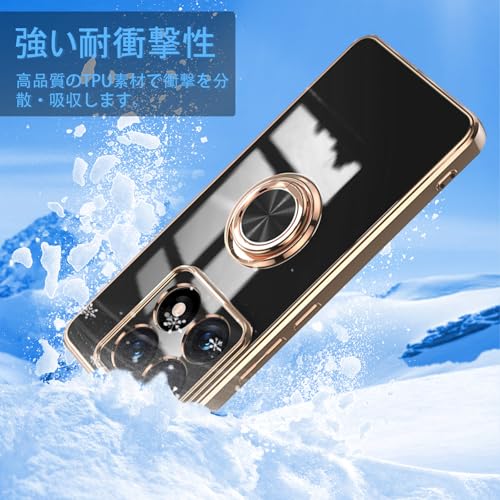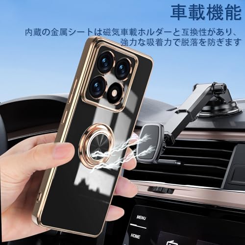 Xiaomi 14T ケース リング付き カバー スマホケース 14T TPU シリコン メッキ加工カバー 磁気吸着 軽量 薄型 人気 耐衝撃 タンド機能付き 360回転 車載ホルダー対応 シャオミ 14t カバー (ブラック)