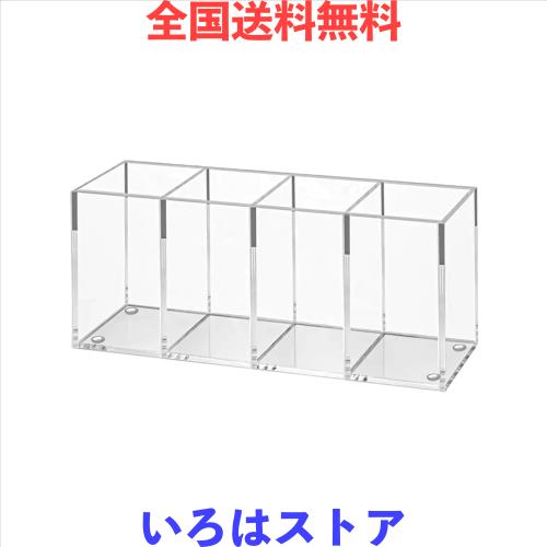 ペンスタンド ペン入れ ペン立て アクリル 4格 仕切り 化粧品収納ケース メイクブラシ立て メガネスタンド 筆箱 小物入れ 文房具 オフィ