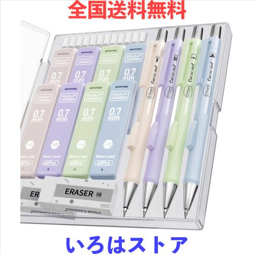 Four Candies シャープペンシル 0.7mm 4本セット 480個のHB芯リフィル 消しゴム 消しゴムリフィル 付き かわいい 女の子 学用品