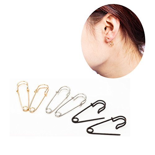 シンプル 安全ピン フープピアス ★ オシャレ ジュエリー 軟骨 ピアス イヤリング 男女兼用 両耳用 アクセサリー 金 銀 黒 K25-6