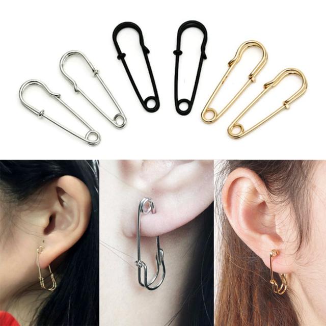 シンプル 安全ピン フープピアス ★ オシャレ ジュエリー 軟骨 ピアス イヤリング 男女兼用 両耳用 アクセサリー 金 銀 黒 K25-7