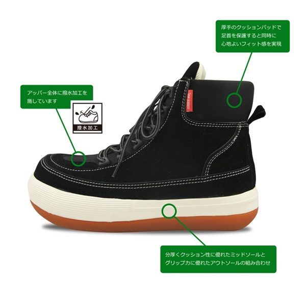 ・踵部分の高反発EVA素材が歩行時の衝撃を吸収します。