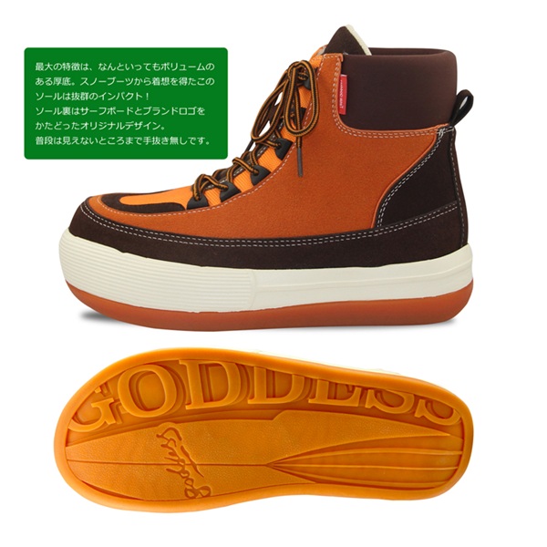 ソール裏は、サーフボードとブランドロゴをかたどったオリジナルデザイン。