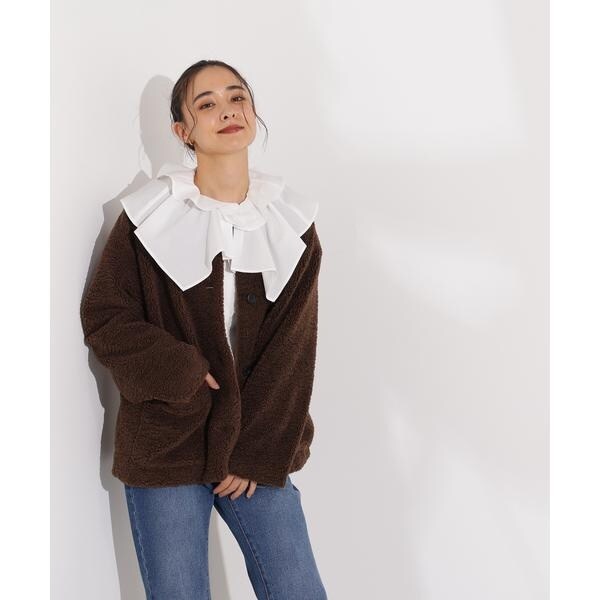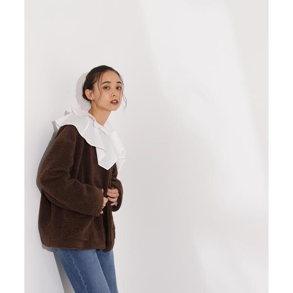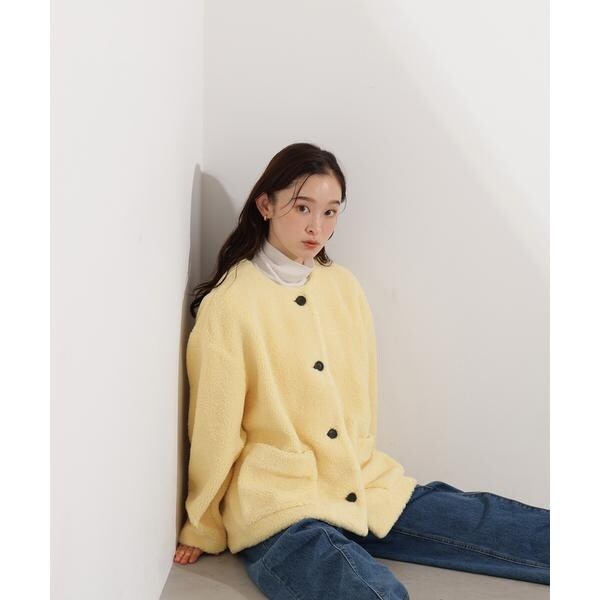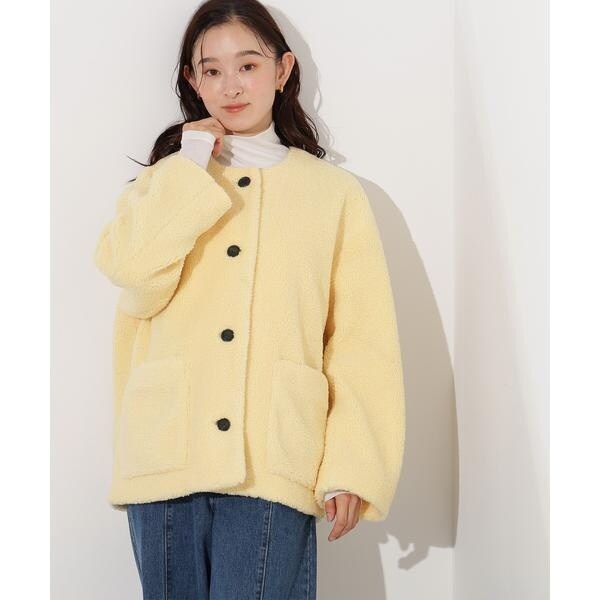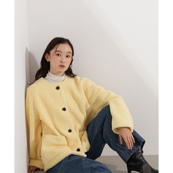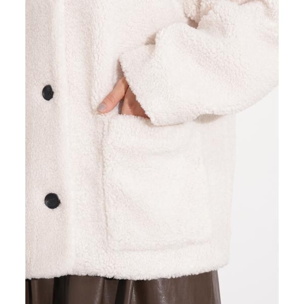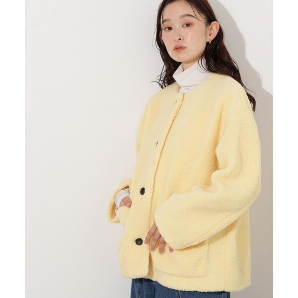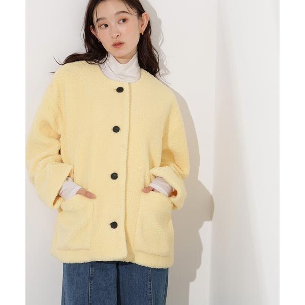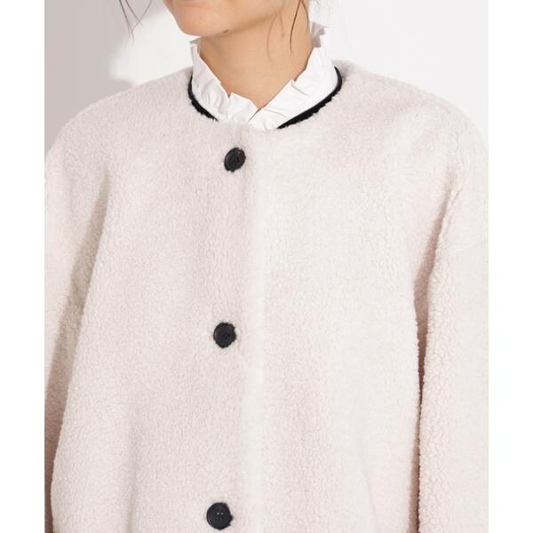 ノーカラーボアブルゾン