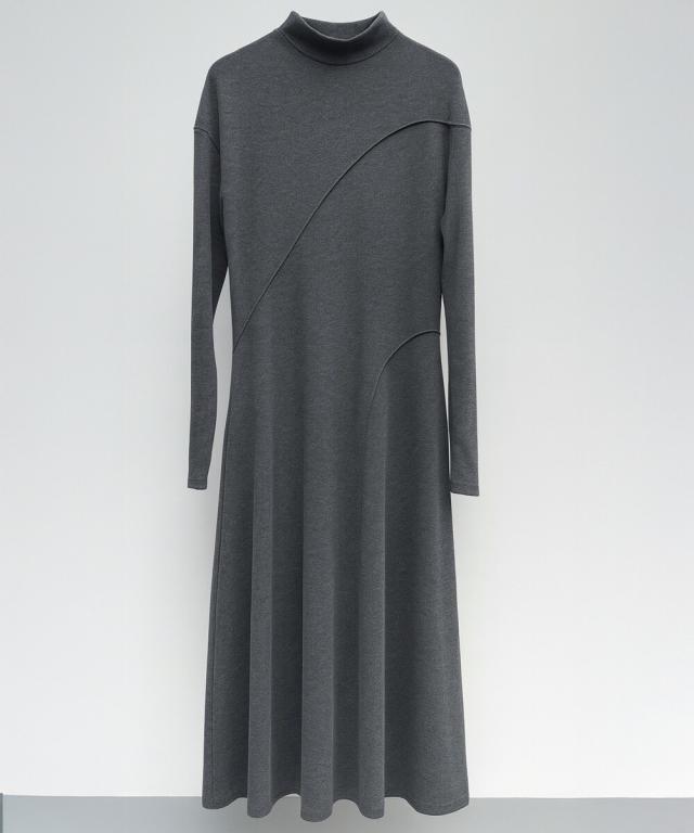 シンプルシルエとデザイン切り替えを楽しむボトルネックのカットソーワンピース。