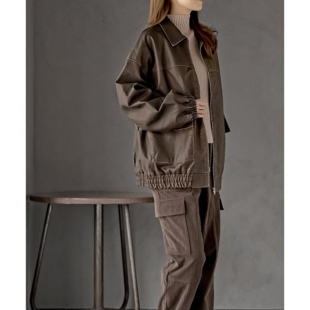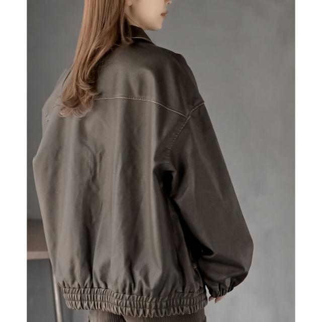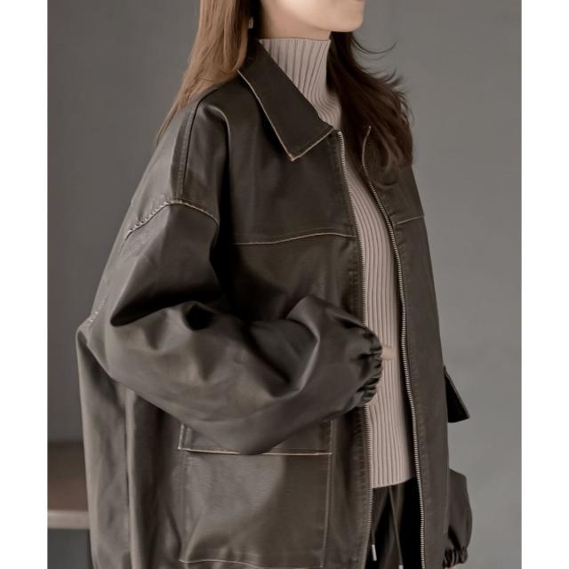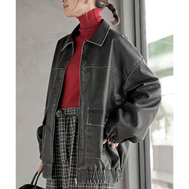 こなれ感の生まれるゆったりサイズのフェイクレザーブルゾン
