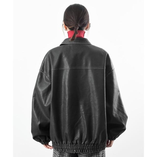 ヴィンテージライクな風合いのフェイクレザーが存在感のあるブルゾンジャケット。