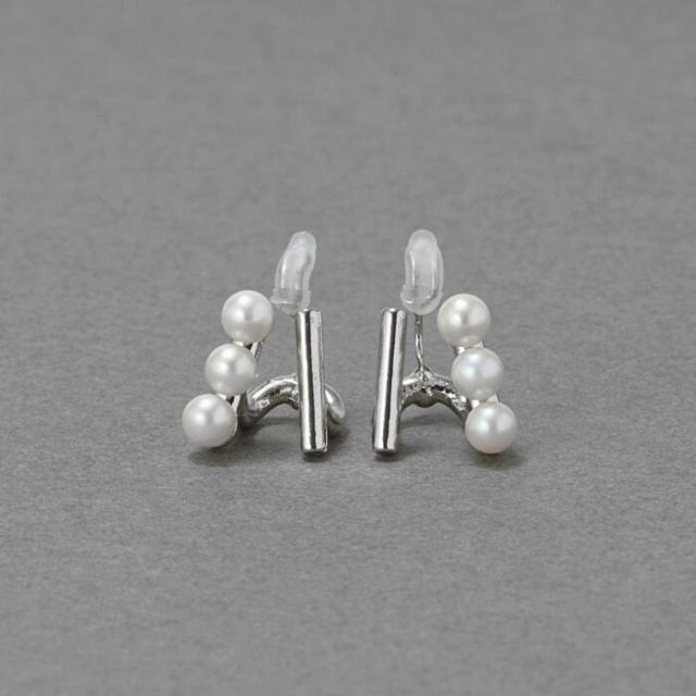【痛くないシリーズ/金属アレルギー対応】ダブルデコレイトパールライトフィットイヤリング シルバー