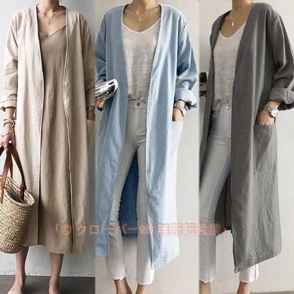 リネンジャケット ロング カーディガン レディース 薄手 ジャケット 夏 アウター ライトアウター スプリングコート コットンリネン トレンチコート