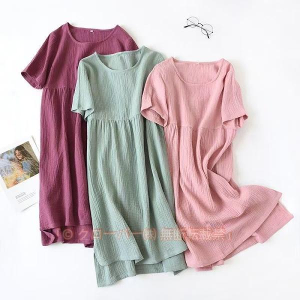 ルームウェア レディース夏ワンピース 半袖 パジャマ ルームワンピース 部屋着 ダブルガーゼ ロング丈 ミモレ丈 入院 介護 入院着 コットン 涼しい 寝巻き 婦人