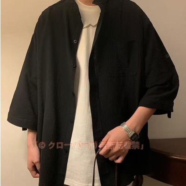 商品名:シャツ バンドカラー メンズ 半袖シャツ ノーアイロン加工 胸ポケット 七分袖 7分袖 長袖 襟なしシャツ バンドカラーシャツ 白シャツ
