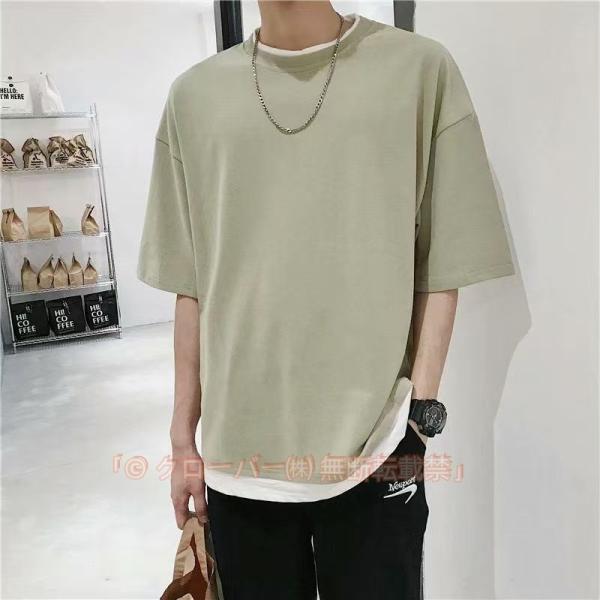 Tシャツ メンズ 夏物 半袖 五分袖 フェイク レイヤード 重ね着 無地!おしゃれ プルオーバー オーバーサイズ カジュアル ロングt
