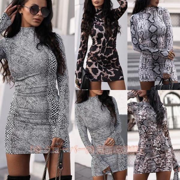 ワンピース タイトワンピース ワンピース タイト 膝丈 幾何学 春 夏 秋 冬 ヒョウ柄 蛇柄 長袖 20代30代40代50代 カジュアル 着痩せ 着回し ファッション