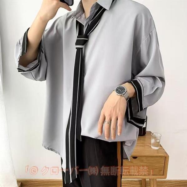 ゆったり 長袖シャツ ネクタイ付き 長袖 九分袖 メンズ ストリート カジュアル ビッグシルエット カジュアルシャツ メンズ 春 秋 個性 大きいサイズ敬老の日