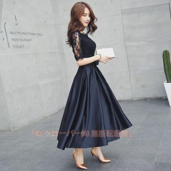 パーティードレス ドレス ロングドレス ナイトドレス イブニングドレス ロングドレス 結婚式 ウェディングドレス 二次会ドレス お呼ばれドレス フォーマルドレス 大人 マキシ丈ドレス レース リボン 袖あり 結婚式成人式 パーティー 二次会 発表会 演奏会 フレア