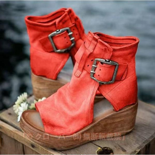 サマーブーツ 厚底 サンダル 歩きやすい グラディエーター ウェッジソール レディース 敬老の日 黒 赤 ブーツサンダル ウェッジサンダル ベルト